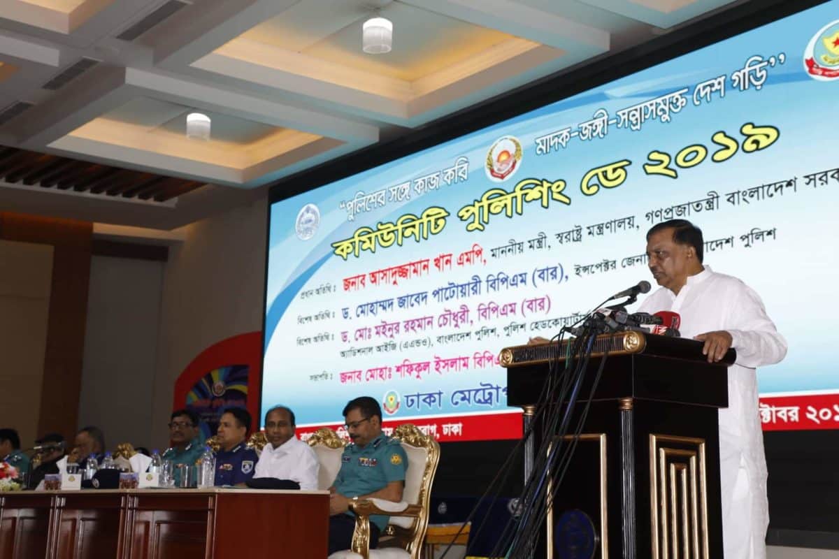 শনিবার দুপুরে রাজারবাগ পুলিশ অডিটরিয়ামে কমিউনিটি পুলিশিং ডে-২০১৯ উপলক্ষে আয়োজিত সমাবেশে উপস্থিত ছিলেন স্বরাষ্ট্রমন্ত্রী।