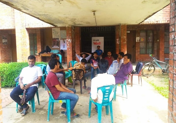 ‘দুর্নীতির বিরুদ্ধে জাহাঙ্গীরনগর’ ব্যানারে আন্দোলনরত শিক্ষক-শিক্ষার্থীরা কর্মসূচি পালন করছেন।