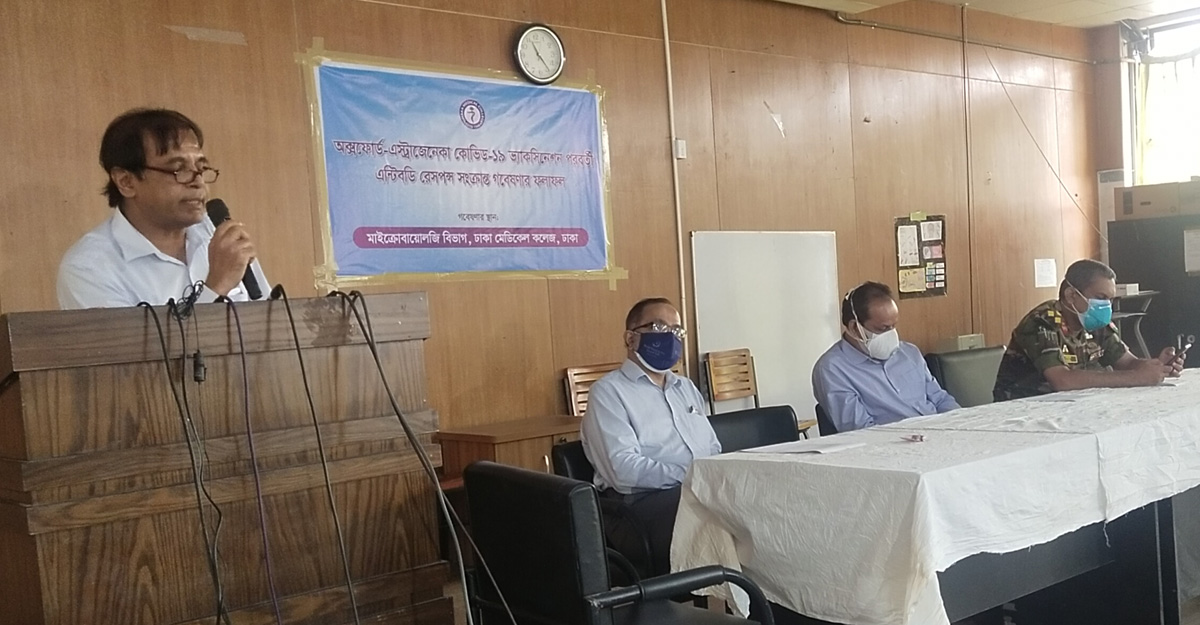 আজ রোববার সকালে ঢাকা মেডিকেল কলেজের লেকচার হলে অক্সফোর্ড-অ্যাস্ট্রোজেনেকা কোভিড-১৯ ভ্যাকসিনেশন পরবর্তী অ্যান্টিবডি রেসপন্স সংক্রান্ত গবেষণা ফলাফল তুলে ধরে এসব জানান মাইক্রোবায়োলজি বিভাগের বিভাগীয় প্রধান অধ্যাপক ডা. এস এম শামসুজ্জামান।