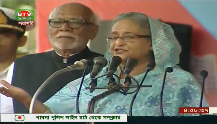 আওয়ামী লীগ সরকার সেই পথেই কাজ করে যাচ্ছে বলে জানান প্রধানমন্ত্রী। বলেন, আমরা ক্ষমতায় থেকে দেশের উন্নয়নের জন্য কাজ করেছি, আর বিএনপি ক্ষমতায় এসে দুর্নীতি, লুট, মানুষ পুড়িয়ে হত্যা, বাস পুড়িয়ে দেশের সম্পদ নষ্ট করেছে। লাখ লাখ শহীদের রক্তে অর্জিত লাল সবুজ পতাকা তুলে দিয়েছে স্বাধীনতা বিরোধীদের হাতে। তারা এতিমের টাকা মেরে খেয়েছে, ঘুষের টাকাসহ ধরা পড়েছে খালেদা জিয়ার ছেলে।