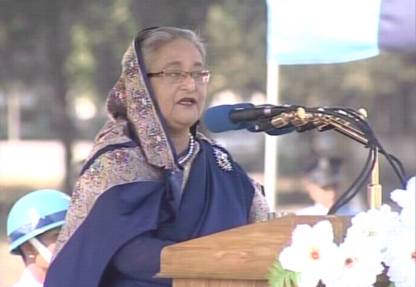 বিমানবাহিনী ঘাঁটি ‘বঙ্গবন্ধু’কে ন্যাশনাল স্ট্যান্ডার্ড প্রদান অনুষ্ঠানে প্রধানমন্ত্রী বলেন, স্বাধীনতা যুদ্ধের ইতিহাস থেকে শিক্ষা নিয়ে বিমানবাহিনী নিজেদের গড়ে তুলে জনগণের আশা আকাঙ্খা পূরণে সক্ষম হবে।