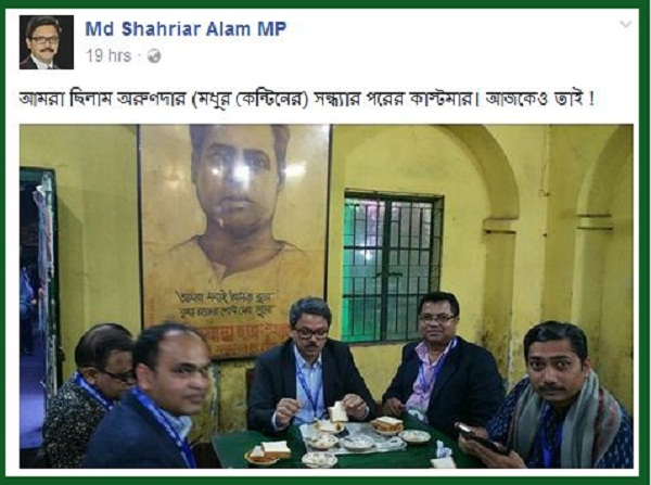 ফেসবুকে ঢাকা বিশ্ববিদ্যালয়ের ঐতিহাসিক মধুর ক্যান্টিনে বন্ধুদের সঙ্গে বসা এক ছবি পোস্ট করে এরকই স্মৃতিচারণ করেছেন পররাষ্ট্র প্রতিমন্ত্রী শাহরিয়ার আলম।