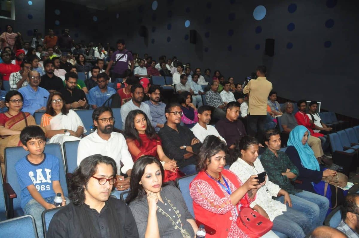 দর্শক সারি থেকে মাইক্রোফোন হাতে সামনে উঠে আসেন আবু শাহেদ ইমন। দর্শকের সামনে দাঁড় করিয়ে দেন ছবির নির্মাতা নাসির উদ্দিন ইউসুফ, ছবিতে প্রধান চরিত্রে অভিনয় করা চিত্রশিল্পী আলমগীর কবীর, অভিনেত্রী দোয়েল ম্যাশ ও মুস্তাফিজ নুর ইমরানকে।