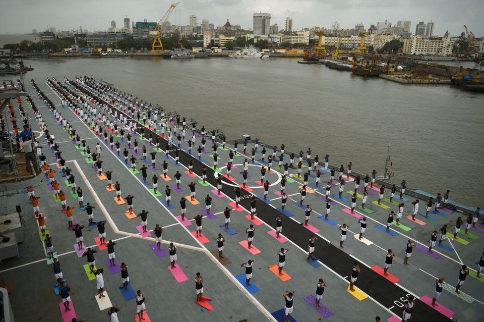 প্রতিকূল আবহাওয়ায় যারা ইয়োগায় মিলিত হয়েছিল তাদের মধ্যে রয়েছে সশস্ত্র বাহিনী। মুম্বাই শহরের উপকূলে নোঙর করা নৌবাহিনীর বিমানবাহী জাহাজ আইএনএস ভিরাটে ইয়োগায় মিলিত হন তারা। গুজরাটে সৈন্যরা অবশ্য ইয়োগায় কিছুটা বিচিত্রতা এনেছিলেন।