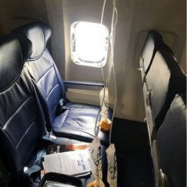 সাউথওয়েস্ট এয়ারলাইন্সের ১৩৮০ ফ্লাইটটি জানালা, পাখা ও উজোজাহাজের কাঠামো ধ্বংস হলে জরুরি অবতরণ করে ফিলাডেলফিয়ায়। এতে সাতজন যাত্রী আহত হয়।
