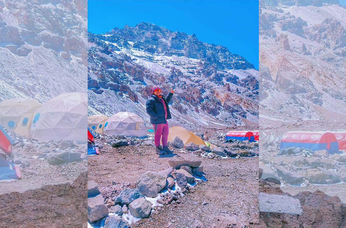 দুইদিন পর ২ ডিসেম্বর সেখান থেকে প্রায় ২৭ মাইল ট্রেকিং করে প্লাজা ডি মুলাস, বেজক্যাম্প পৌঁছান তিনি। প্রচণ্ড ঠাণ্ডা ও মাইনাস ডিগ্রির তাপমাত্রার সাথে খাপ খাওয়াতে ৫ ডিসেম্বর পর্যন্ত বেজক্যাম্পে অপেক্ষা করতে হয় তাকে।