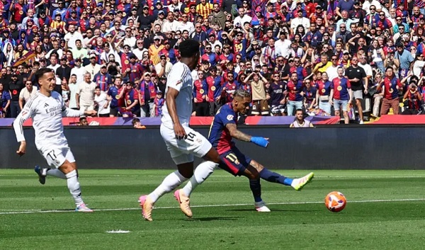 বার্সেলোনা-রিয়ালের এল ক্ল্যাসিকোয় শুরুর ১৫ মিনিট ছিল মাদ্রিদের। এসময় কাইলিয়ান এমবাপে করেন দুই গোল। দুই গোলে পিছিয়ে যাওয়ার পরের আধাঘণ্টায় ঝড় তোলে বার্সা। প্রথমার্ধে তারা করে ৪ গোল। পরে এমবাপে হ্যাটট্রিক করলেও হার এড়াতে পারেনি রিয়াল মাদ্রিদ। ৭ গোলের রোমাঞ্চের মহারণে ৪-৩ ব্যবধানে শেষ হাসি হেসে কাতালুনিয়ানরা লিগ শিরোপার একেবারে কাছে পৌঁছে গেছে।