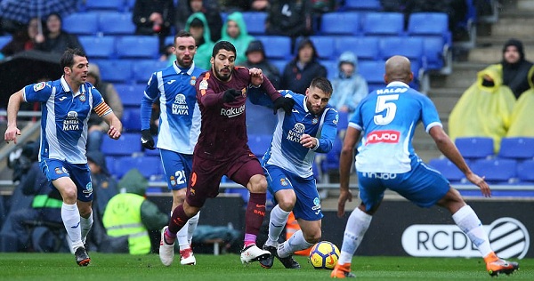 ম্যাচের ২৩ মিনিটে ফিলিপে কৌতিনহোর শট ক্রসবার দুর্ভাগ্যে না পড়লে এস্পানিওল পিছিয়ে পড়তে পারত তখনই। ম্যাচে বৃষ্টির প্রকোপ ছিল, শুরুর একাদশে ছিলেন না লিওনেল মেসিও। দুইয়ে মিলে খেলায় ছন্দ হারায় অতিথিরা।
