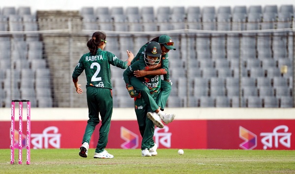 নাহিদা আক্তার ও সুলতানা খাতুন ৩টি করে উইকেট নেন। শুরুর দুটি উইকেট নেন পেসার মারুফা আক্তার।