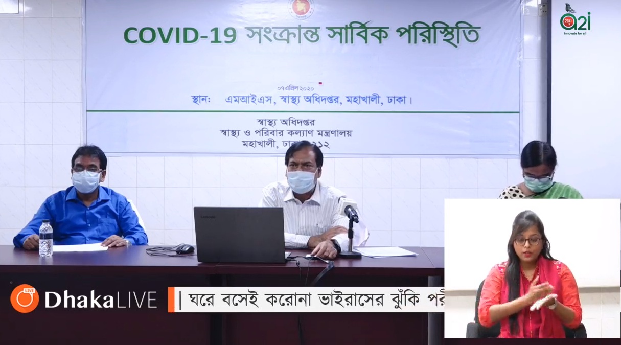 সংবাদ সম্মেলনে স্বাস্থ্য অধিদপ্তরের মহাপরিচালক মো. আবুল কালাম আজাদ জানান, গত ২৪ ঘণ্টায় ৭৯২ জনের নমুনা পরীক্ষা করা হয়েছে। প্রাতিষ্ঠানিক কোয়ারান্টাইনে আছেন ৬৩৮ জন। আইসোলেশনে আছেন ৭ হাজার ৬৯৩ জন।