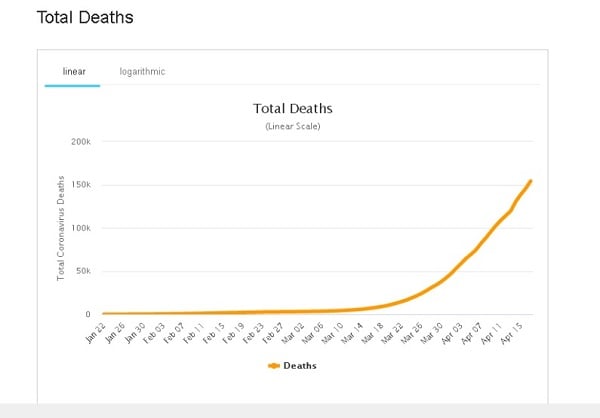 ১৩ এপ্রিল সংখ্যাটা হয়ে যায় ১ লাখ ১৯ হাজার ৬১৮ জন। তারপরের দিন ১৪ এপ্রিল সংখ্যা গিয়ে দাঁড়ায় ১ লাখ ৩০ হাজার ৩৭৯ জনে। আর ১৫ এপ্রিল ১ লাখ ৩৮ হাজার ৪৭৫। ১৬ই এপ্রিল ১ লাখ ৪৫ হাজার ৪৭৩ জন প্রাণ হারায় এই ভাইরাসে আক্রান্ত হয়ে।