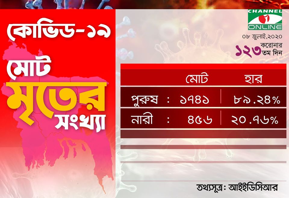 করোনাভাইরাস এ আক্রান্ত হয়ে এখন পর্যন্ত দেশে ২ হাজার ১৯৭ জন মৃত্যুবরণ করেছেন। গত ২৪ ঘণ্টায় মারা গেছেন ৪৬ জন। এখন পর্যন্ত মারা যাওয়া ব্যক্তিদের মধ্যে সর্বোচ্চ ৫০ দশমিক ৮০ শতাংশ ঢাকা বিভাগের।