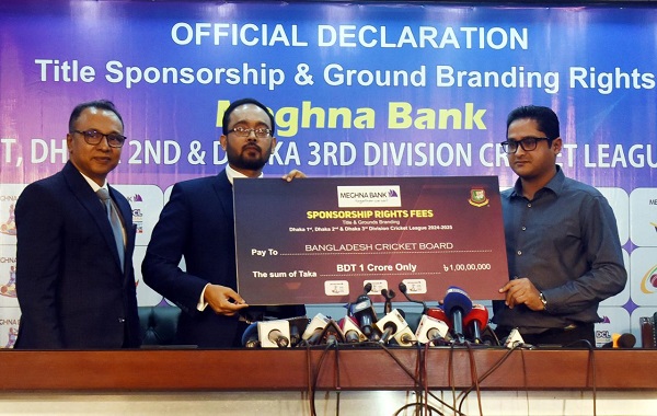 ঢাকা প্রথম-দ্বিতীয়-তৃতীয় বিভাগ ক্রিকেট লিগের পৃষ্ঠপোষক হয়েছে মেঘনা ব্যাংক। তিনটি লিগ আয়োজনে এক কোটি টাকা আয়োজকদের দেবে প্রতিষ্ঠানটি। ভবিষ্যতেও ক্রিকেটের সঙ্গে থাকার প্রত্যয় ব্যক্ত করেছে মেঘনা ব্যাংক কর্তৃপক্ষ।