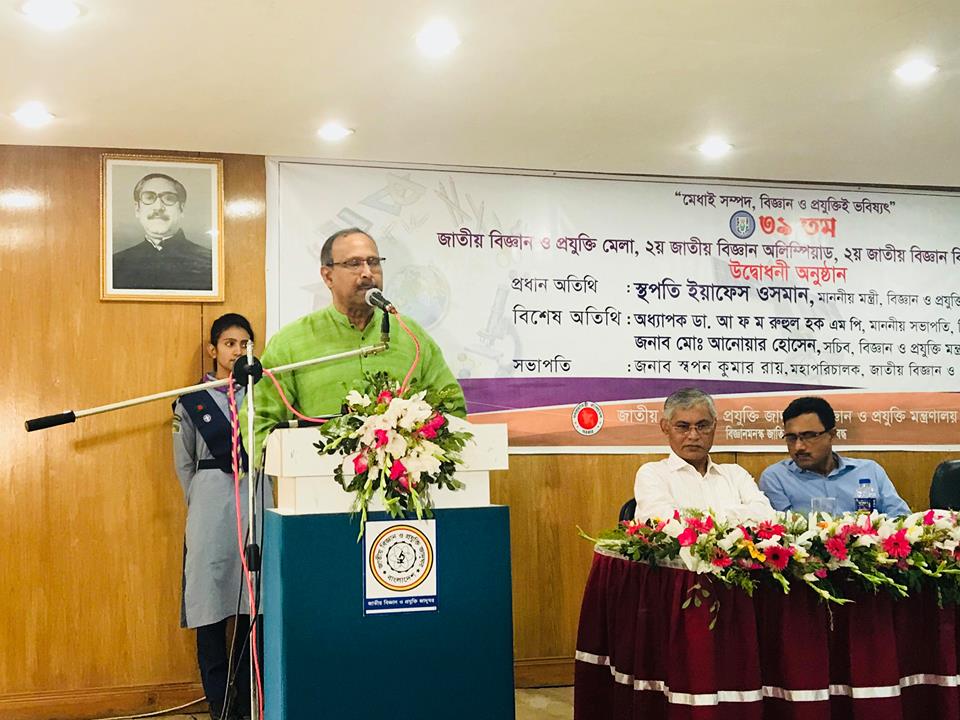 ‘মেধাই সম্পদ, বিজ্ঞান প্রযুক্তিই ভবিষ্যৎ’ এই মূলবাণী নিয়ে আজ ৩৯তম জাতীয় বিজ্ঞান ও প্রযুক্তি সপ্তাহের এই মেলার উদ্বোধন করেন বিজ্ঞান ও প্রযুক্তিমন্ত্রী স্থপতি ইয়াফেস ওসমান।