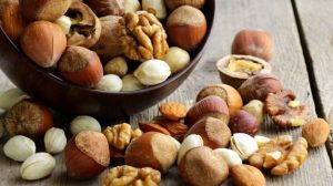 বাদামে আছে আনস্যাচুরেটেড ফ্যাট যা শরীরের জন্য ভালো। আখরোট, কাজু, পেস্তা এবং চিনাবাদামে প্রচুর ফাইবার আছে, যা হজমে সহায়তা করে। একমুঠো বাদামে প্রায় ১৬০ ক্যালোরি, ৬ গ্রাম প্রোটিন এবং ৩ গ্রাম ফাইবার থাকে। এছাড়াও আখরোটে ওমেগা-৩ ফ্যাট আছে। তবে মনে রাখা জরুরি যে বাদামে প্রচুর ক্যালরি আছে। তাই ওজন কমাতে চাইলে বিকালের পর বাদাম না খাওয়াই ভালো।