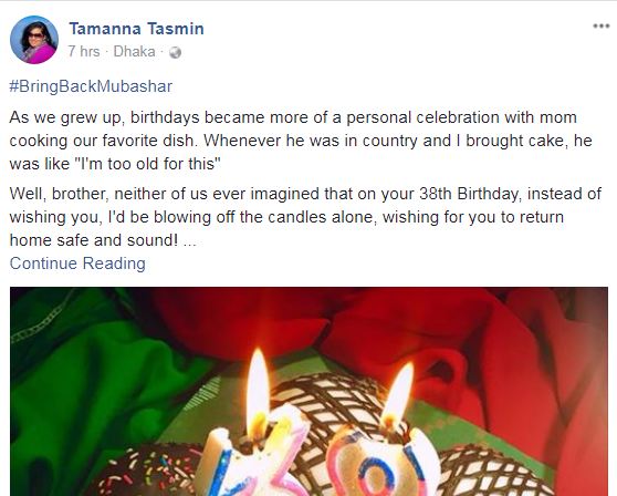 নিখোঁজ শিক্ষক ও গবেষক মোবাশ্বের হাসান সিজারের জন্মদিন উপলক্ষ্যে সিজারের বোন তামান্না তাসনিম তার ফেসবুক আইডি থেকে সিজারকে নিয়ে মায়ের একটি লেখা পোস্ট করেছেন।