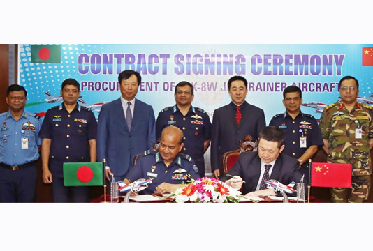 বাংলাদেশ বিমান বাহিনী ও চীনের মধ্যে কে-৮ডব্লিউ জেট ট্রেইনার বিমান ক্রয় সংক্রান্ত একটি চুক্তি স্বাক্ষরিত হয়েছে।