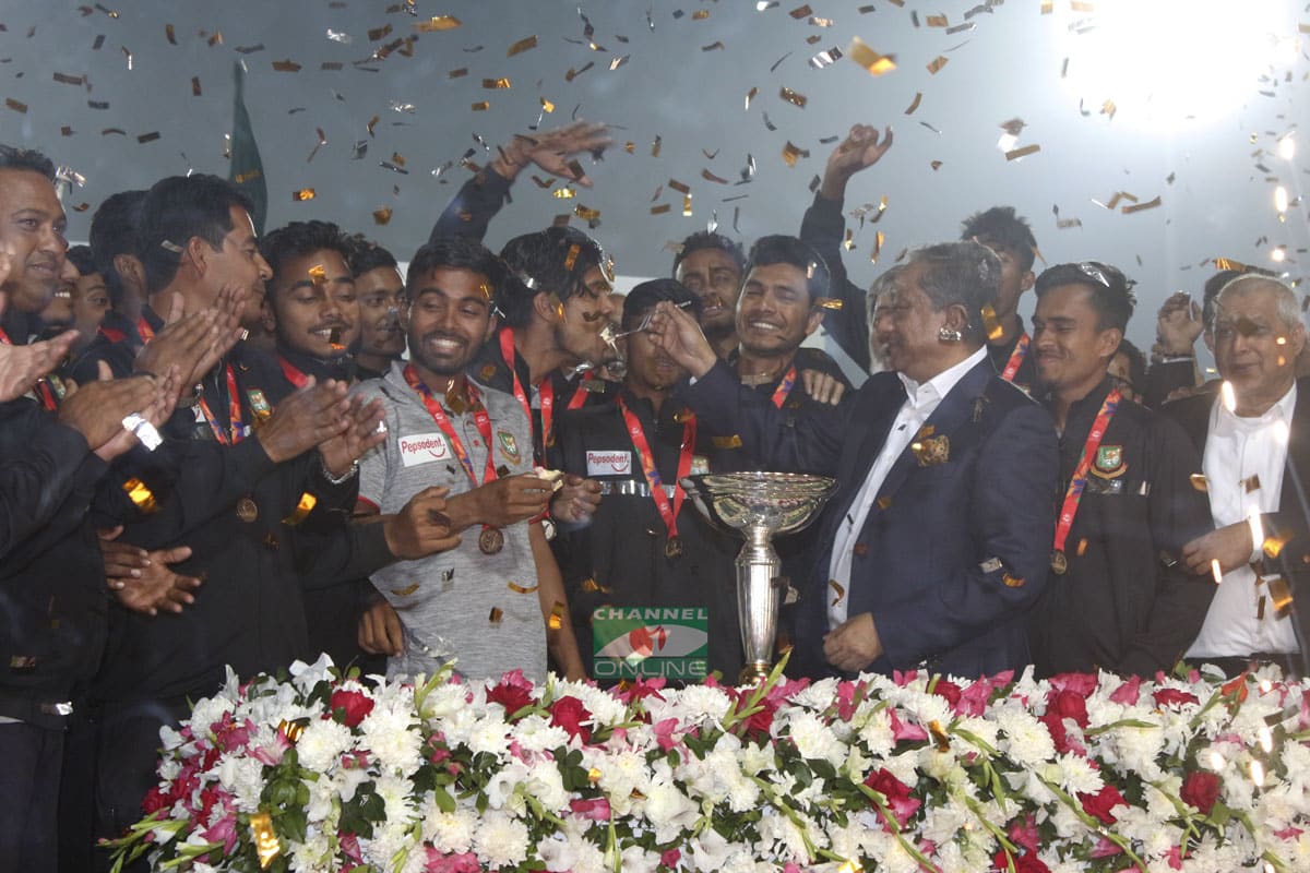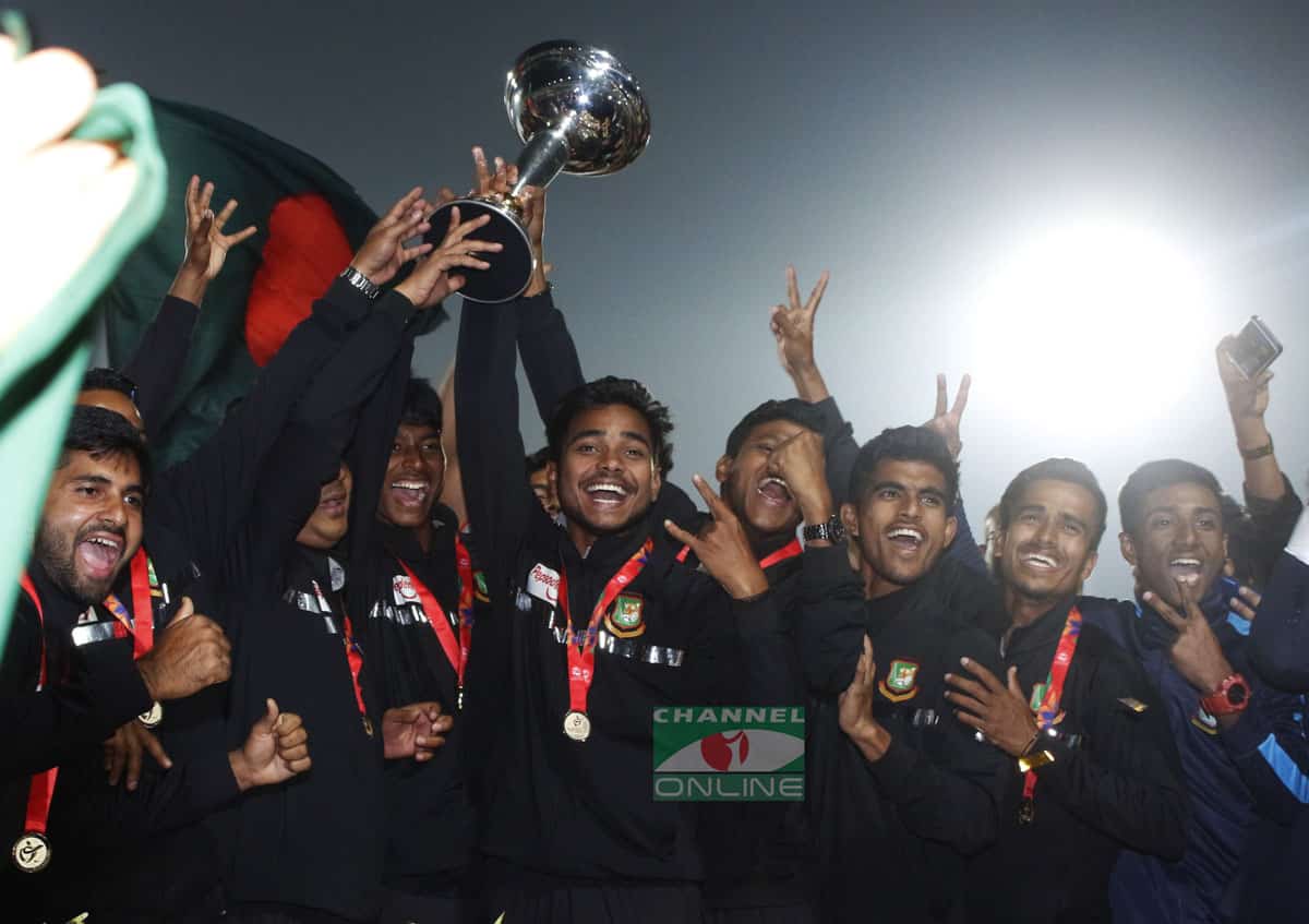 বুধবার বিকেল ৫টায় হযরত শাহজালাল আন্তর্জাতিক বিমানবন্দরে অবতরণ করে অনূর্ধ্ব-১৯ বিশ্বকাপ জয়ী বাংলাদেশ দলকে বহনকারী উড়োজাহাজ। সাউথ আফ্রিকার পচেফস্ট্রুমে রোববার ভারতের যুব দলকে ৩ উইকেটে হারিয়ে দেশের ইতিহাসের প্রথম কোনো বিশ্বকাপ জয়ের ট্রফি উঁচিয়ে ধরেন টাইগার অধিনায়ক আকবর আলী।