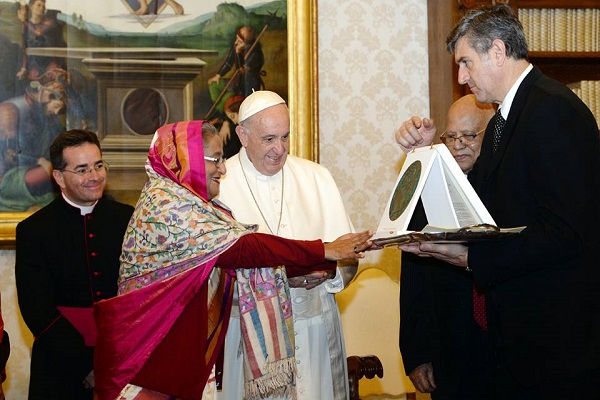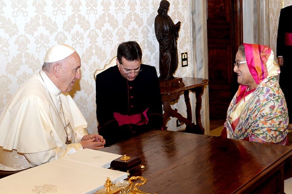 সোমবার পোপ ফ্রান্সিসের আমন্ত্রণে প্রধানমন্ত্রী শেখ হাসিনা ভ্যাটিক্যান সিটি সফরে যান। সেখানে পোপ ও সেক্রেটারি স্টেট অব ভ্যাটিকান সিটি কার্ডিনাল পেইট্রো পারোলাইনের সঙ্গে বৈঠক করেন প্রধানমন্ত্রী।