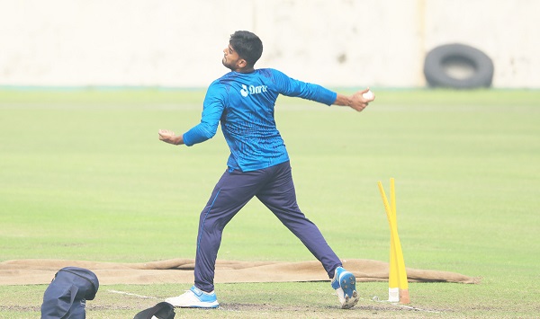 বোলিং শুরুর আগে ওয়ার্মআপ করছেন তাসকিন আহমেদ।