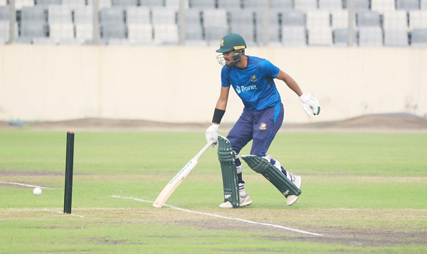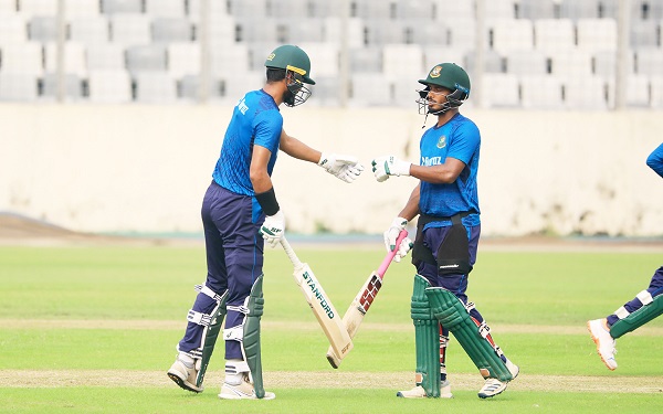 অন্যান্য দিনের মতো বুধবারও ম্যাচ সিনারিও অনুশীলন। বরাবরের মতোই ভালো শুরু করছেন তানজিদ হাসান তামিম ও নাঈম শেখ।