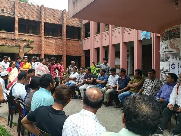 ওদিকে, সাড়ে ১১টার দিকে প্রশাসনপন্থী শিক্ষকরা আন্দোলনকারী শিক্ষকদের দ্বারা লাঞ্চিত হয়েছেন বলে অভিযোগ এনে এর বিচার দাবি করে প্রশাসনিক ভবনের সামনে মানববন্ধন করেন।