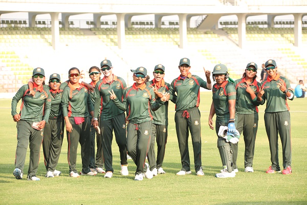 রুমানা আহমেদ ২ ও লতা মন্ডল ৬ রানে অপরাজিত থাকেন। আগের ম্যাচের সেঞ্চুরিয়ান অধিনায়ক নিগার ১৩ রান করে। ফারজানা হক পিংকির ব্যাটে আসে ১৬ রান।