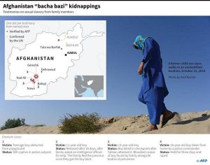 সম্প্রতি কয়েকটি আফগান পরিবারের সাথে কথা বলে সংবাদ সংস্থা এএফপি, যাদের শিশুদের, মূলত বালকদের যৌন নির্যাতনমূলক ‘বাচা বাজি’র জন্য অপহরণ করা হয়। মানবাধিকারের জঘন্যতম লঙ্ঘণ এই শত বছরের পুরাতন প্রথাকে তালেবান জঙ্গিরা ব্যবহার করে অস্থিতিশীলতা বিস্তারের হাতিয়ার হিসেবে। চরম অস্থিতিশীল উত্তরাঞ্চলকে অশান্ত রাখতে জঙ্গিদের এই সহায়ক বিষয়টি প্রথম প্রকাশ্যে আনে এএফপি।