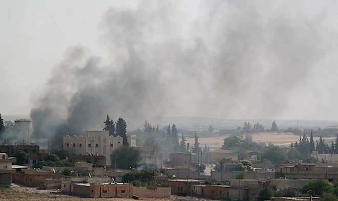 শনি ও রোববার জুড়ে সিরিয়ায় কুর্দি নেতৃত্বাধীন সিরিয়ান ডেমোক্রেটিক ফোর্সেস (এসডিএফ)-এর নিয়ন্ত্রণাধীন অঞ্চলগুলো ব্যাপক বোমা হামলার সম্মুখীন হয়েছে। শেষ খবর পাওয়া পর্যন্ত, তুরস্ক কুর্দিদের কাছ থেকে সীমান্তবর্থী দু’টো গুরুত্বপূর্ণ শহরের দখল নিয়ে নিয়েছে।