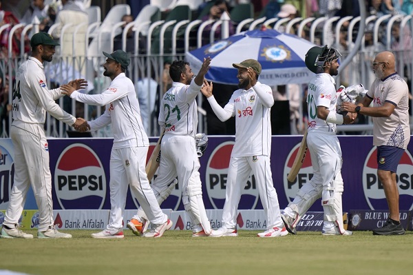 পাকিস্তানের মাটিতে বাবর আজমদের হোয়াইটওয়াশ করে ছাড়ল বাংলাদেশ। দাপট দেখিয়ে টিম টাইগার্স টেস্ট সিরিজ জিতল ২-০ ব্যবধানে। মঙ্গলবার রাওয়ালপিন্ডিতে দ্বিতীয় টেস্টের পঞ্চম দিনে চা বিরতির আগে বাংলাদেশ ১৮৫ রানের লক্ষ্যে পৌঁছায় ৪ উইকেট হারিয়ে। এত বড় অর্জনের পরও বাংলাদেশের উদযাপন ছিল সাদামাটা!