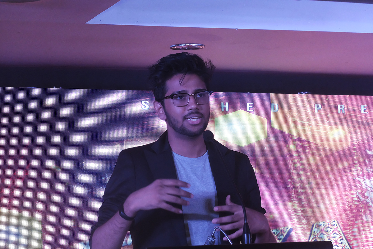 ‘পটাকা’ উন্মুক্ত অনুষ্ঠানে (বাম থেকে) আবদুল আজিজ, নুসরাত ফারিয়া, বাঁধন এবং আরিফিন শুভ