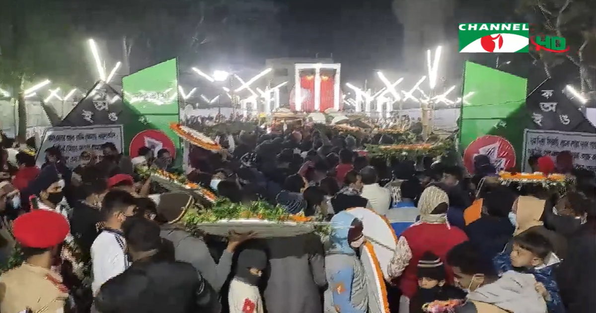 নারায়ণগঞ্জে কেন্দ্রীয় শহীদ মিনারে ভাষা শহীদদের শ্রদ্ধা জানান জেলা প্রশাসক মঞ্জুরুল হাফিজ ও পুলিশ সুপার মোহাম্মদ জায়েদুল আলমসহ জেলা প্রশাসন এবং পুলিশ প্রশাসনের উর্ধ্বতন কর্মকর্তারা।
