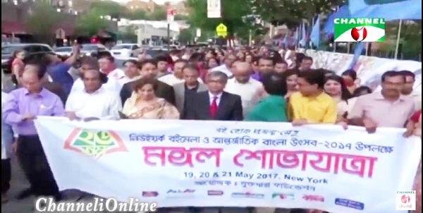 নিউইয়র্কের জ্যাকসন হাইটসে মুক্তধারা ফাউন্ডেশন আয়োজিত উৎসবের শুরুতে একটি মঙ্গল শোভাযাত্রার আয়োজন করা হয়। মঙ্গল শোভাযাত্রা বিভিন্ন সড়ক ঘুরে মূল ভেন্যুতে এসে শেষ হয়। এরপর মঞ্চে প্রদীপ প্রজ্বলনের মাধ্যমে শুরু হয় মূল অনুষ্ঠানমালা। উত্তরীয় পরিয়ে দেওয়া হয় অতিথিদের। উদ্বোধনী অনুষ্ঠানে যোগ দেন অধ্যাপক পবিত্র সরকার, অধ্যাপক শামসুজ্জামান খান, আমীরুল ইসলাম, লুৎফর রহমান রিটন, ড. লীনা তাপসী, মেজবাহ উদ্দিন আহমেদ, জামাল উদ্দিন হোসেন, ফেরদৌস আরা এবং রোকেয়া হায়দার। বিশ্বের বিভিন্ন প্রান্তের কবি, সাহিত্যিক, লেখক ও প্রকাশকরা উৎসবে যোগ দেন। স্বাগত বক্তব্য রাখেন উৎসবের আহ্বায়ক ফেরদৌস সাজেদীন।