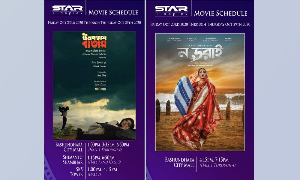 দেশ বিদেশের মোট পাঁচটি সিনেমা দিয়ে নতুন করে যাত্রা শুরু করছে স্টার সিনেপ্লেক্স। এরমধ্যে হলিউডের দু’টি আলোচিত ছবি এবং বহুল প্রতীক্ষিত বাংলাদেশের ‘ঊনপঞ্চাশ বাতাস’ রয়েছে। হলিউডের দুই ছবির মধ্যে একটি ক্রিস্টোফার নোলানের ‘টেনেট’ অন্যটি ডিজনির লাইভ অ্যাকশন ‘মুলান’।