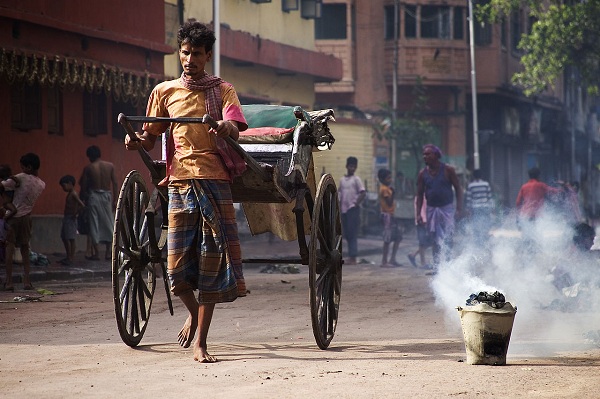 এই রিক্সাঅলাদের সন্তানেরা কেউ লেখাপড়া শিখে ছোটখাটো চাকরি করে, কেউ দোকানদারি করে, কেউ গাড়ি চালায়। ইচ্ছে জাগলো মানুষগুলোর কষ্টের কথা শুনি। উষ্কে দেয়ার জন্য বললাম, এখন নানা রকমের গাড়ি, অটোরিক্সা এসব আসার পর তো আপনাদের উপার্জন কমে গেছে। কাকা, কেমন চলছে দিনকাল? বললেন, খুব ভালো। গাড়ির ইনকাম গাড়ি করছে, আমাদের ইনকাম আমরা করছি। আমি টাশকি খেয়ে গেলাম। আবার প্রশ্ন করলাম, আছেন কেমন? বললেন ভালো আছি। মনে করেছিলাম, হুড়মুড়িয়ে রিক্সাঅলা কেঁদে কেঁদে নিজের দুঃখের কথা বলবে। যা হোক, খুব বেশি সুবিধা হলো না। কয়েকটি ছবি তুলে মীর্জা গালিব স্ট্রিটে মেনে পড়লাম। কলকাতায় একসময় মোড়ে মোড়ে হাতে টানা রিক্সার ভিড় দেখতাম। দিন যত যাচ্ছে এটি কমছে। যতদূর জেনেছি ১৬ শতকে জাপানে এই রিক্সা উদ্ভাবন করা হয়। ১৮৮০ সালে হিমাচল প্রদেশের সীমলায় এই রিক্সা চালু হয়। দিনে দিনে এশিয়ার বিভিন্ন দেশেই ছড়িয়ে পড়ে এই রিক্সা। পরে এই রিক্সা থেকেই প্যাডেল চালিত রিক্সা আসে। কিন্তু কলকাতায় এর ঐতিহ্য বহুকাল জীবন্ত। এখন বিলুপ্তপ্রায় সভ্যতার কথা একটু হতাশার সঙ্গে তুলে ধরার ইচ্ছে ছিল। কিন্তু রিক্সার ওই চালকের স্বস্তিকর কথাবার্তায় সেটি আর সম্ভব হলো না।