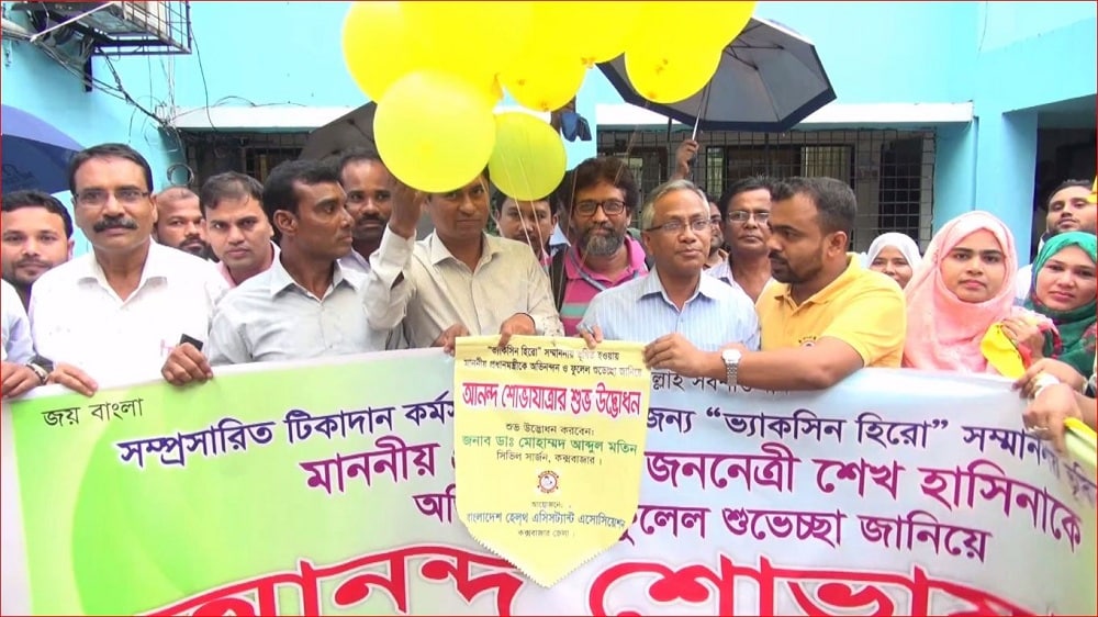 এসময় বক্তারা আরও বলেন, ১৯৯৬ সালে আওয়ামী লীগ সরকার ক্ষমতায় আসার পর টিকাদান কর্মসূচি ব্যাপকভাবে জনগণের মাঝে ছড়িয়ে দিয়েছেন শেখ হাসিনার সরকার। জননেত্রী শেখ হাসিনা সরকারের আরেকটি বড় সফলতা হল কমিউনিটি ক্লিনিক প্রকল্প। যে ধারণা তৃণমূল স্বাস্থ্যসেবায় বৈপ্লবিক পরিবর্তন ও সাফল্য দেশের গন্ডি ছাড়িয়ে বিদেশে ও আলোচিত হয়ে ওঠে।
