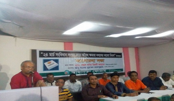১৯৮২ সালের, ২৪ মার্চ সংবিধান লংঘন করে অবৈধ ক্ষমতা দখলের কালো দিবস উপলক্ষে স্বাধীনতা ফোরামের আয়োজনে শুক্রবার বিকেলে বাংলাদেশ ফটো জার্নালিস্ট এসোসিয়েশনের আলোচনা সভায় তিনি এসব কথা বলেন।