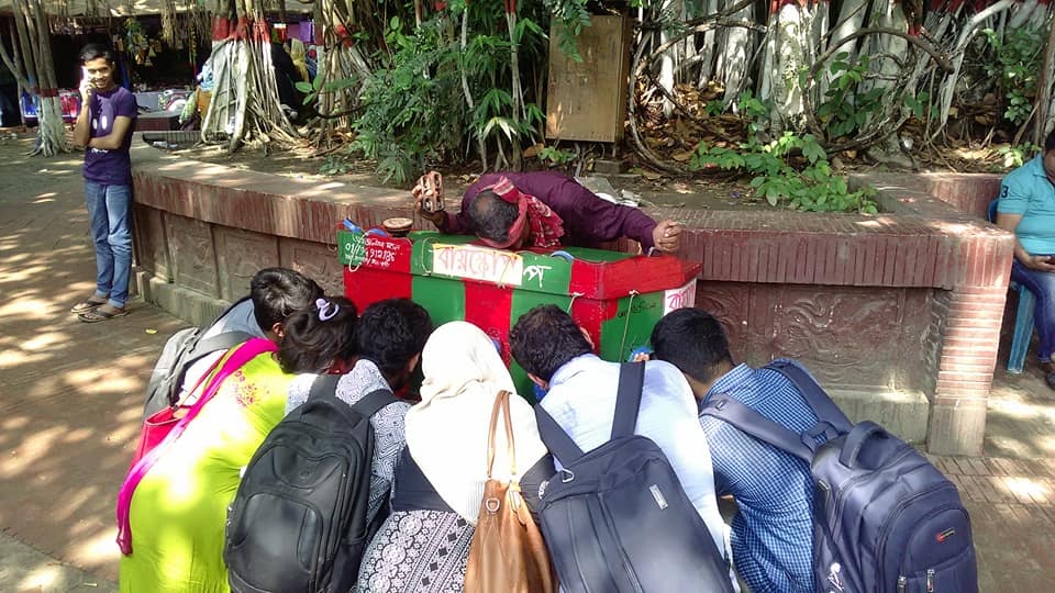 বাংলা একাডেমি চত্বরে পা রাখতেই ‘কী চমৎকার দেখা গেলো…’ সুর কানে ভেসে আসছিল। নজরুল মঞ্চের পাশে বয়স্ক একজন লোককে দেখা গেল ছন্দে ছন্দে কিছু পাঠ করতে, প্রায় পুঁথি পাঠের মতো। তিনি পাঠ করছিলেন আর সামনে থাকা বাক্সে একটি চাবি ঘুরাচ্ছিলেন। পাঁচ-ছয়জন শিক্ষার্থী চেয়ারে বসে মাথা নিচু করে বায়োস্কোপ দেখছে আগ্রহভরে।
