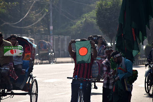 বাস, ট্রাক, প্রাইভেট কার বা সিএনজি অটোরিকশাতেও ছোট জাতীয় পতাকা উড়তে দেখা যায়। যেন বিজয়ের উৎসব মানুষের মনে প্রাণে।