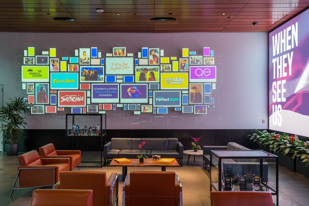 নেটফ্লিক্সের ৪৭৮০ ফুটের এই লবি এখন টাউন হলে পরিণত হয়েছে। এখানে আসলে তারকা এবং নির্মাতাদের মিউজিসিয়ান এবং রাজনীতিবিদদের সঙ্গে গল্প করতে দেখা যায়। সবাই একই জায়গায়, একই সোফায় বসে একই খাবার খায়। প্রতিদিন প্রায় ৩০০ অতিথি এসে নেটফ্লিক্সের লবির আধুনিক ডিজাইনের সোফাগুলোতে বসে মিটিং করেন।