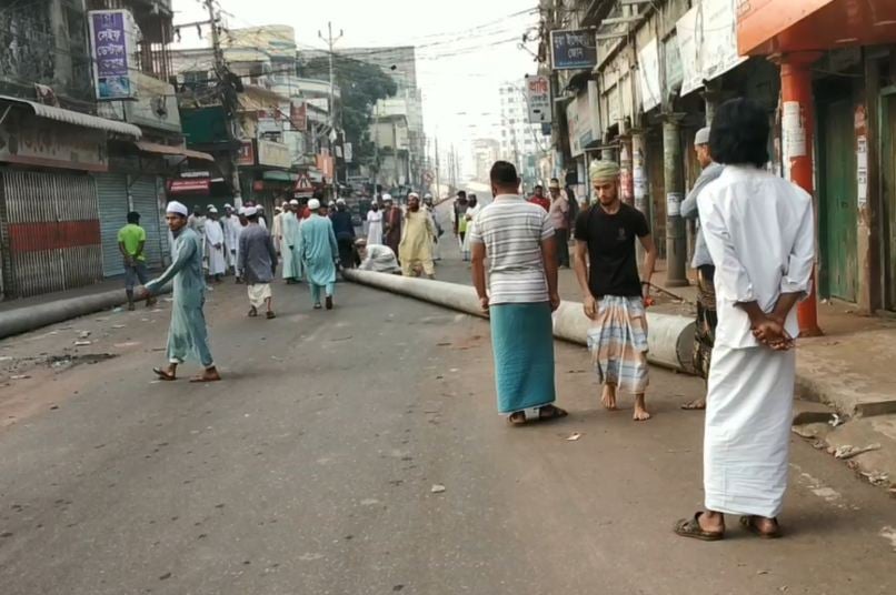 রোববার সকাল থেকেই হেফাজতে ইসলামের নেতাকর্মীরা হরতালের সমর্থনে জেলার বিভিন্ন স্থানে বিক্ষোভ মিছিল করছে।