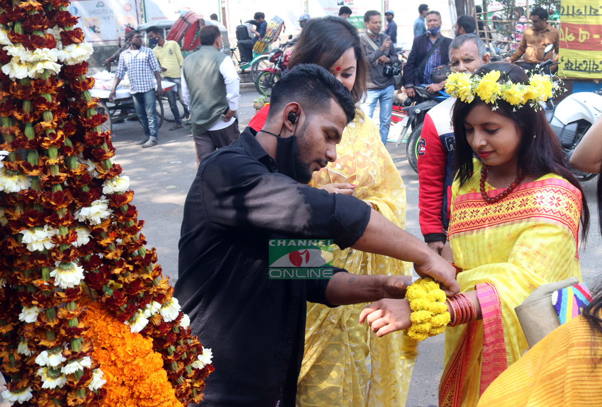 প্রকৃতির সাজে সাজাতে রাজধানীর ফুলের দোকানগুলোতে ছিল ক্রেতাদের উপচে পড়া ভীড়।