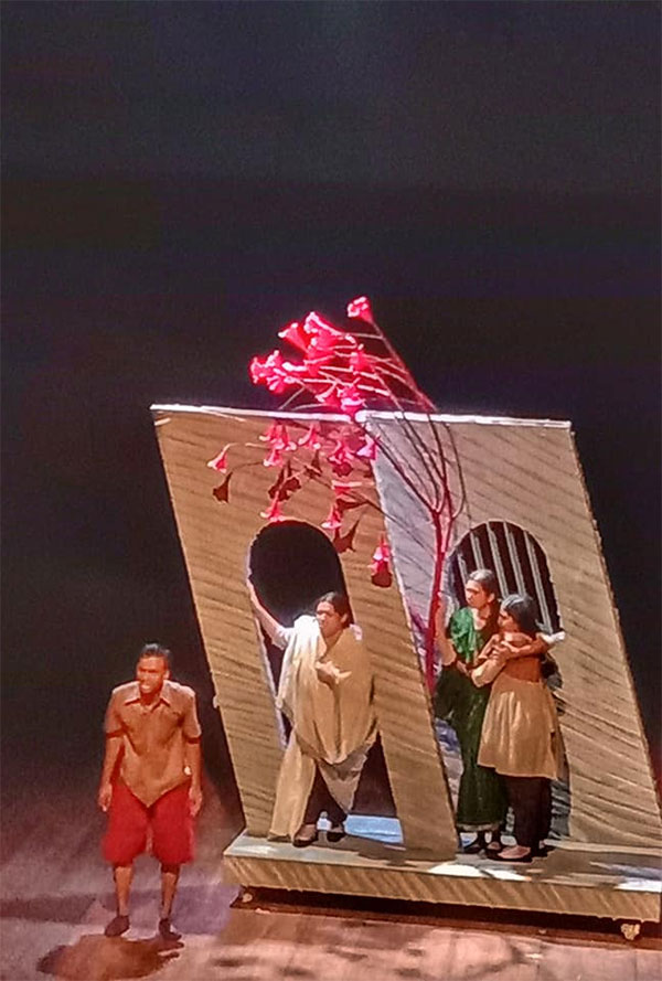 বর্ণনাত্মক রীতির যে শক্তি তাই অভিনেতাদের চলনে–বলনে ফুটে উঠছিল। দুই ঘণ্টাব্যাপ্তির নাট্যে অভিনয়ের ভাগ সে অর্থে বেশি নয়। বিবৃতিই ছিল প্রধান চালিকাশক্তি। তার নেপথ্য কারণ হয়তো বা, নির্দেশক উপন্যাসের কাঠামোকে না ভেঙ্গেই মঞ্চে নিয়ে আসতে চেয়েছেন। নাট্যরূপে তার ব্যত্যয় ঘটত নিঃসন্দেহে।