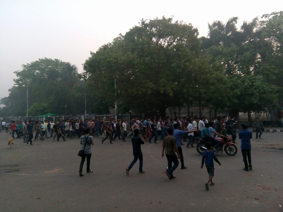 কিছুক্ষণের মধ্যে পাঁচটি হল থেকে বেরিয়ে আসেন ছাত্রীরাও। সংবাদটি ঠিক না হলেও ‘আমার ভাই মরলো কেন, প্রশাসন জবাব চাই’, ‘ক্যাম্পাসে পুলিশ কেন, প্রশাসন জবাব চাই’ স্লোগান দিতে দিতে টিএসসিতে জড়ো হন হাজারখানেক ছাত্রী।
