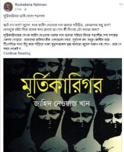 এবারের বইমেলায় আবিষ্কার প্রকাশনী প্রকাশ করেছে জাহিদ নেওয়াজ খানের মূর্তিকারিগর। বইটি নিয়ে এবার ফেসবুকে স্ট্যাটাস দিলেন সাংবাদিক রুদ্রাক্ষ রহমান। ফেসবুকে মূর্তিকারিগর নিয়ে লেখা তার পোস্টটি হুবহু তুলে ধরা হলো নিচে।