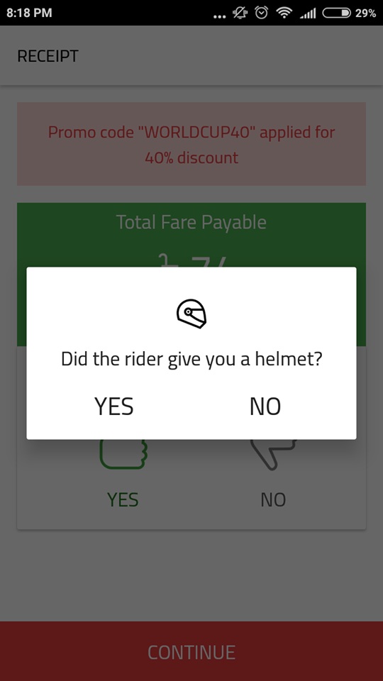 হেলমেট নিয়ে ব্যবহারকারীদের মধ্যে শুরু থেকেই সমালোচনা থাকায় সম্প্রতি মোটরসাইকেলে যাত্রীর জন্য হেলমেট ছিলো কিনা জানতে রাইড শেষে যাত্রীর জন্য একটি অপশন চালু করেছে পাঠাও।