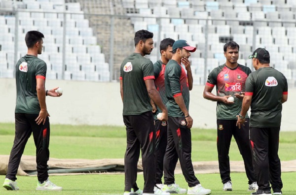 অনুশীলন শেষে খালেদ মাহমুদ বললেন, ‘টি-টুয়েন্টি মাথায় রেখেই বোলিং-ফিল্ডিং হচ্ছে। বোলাররা নতুন বলে কী ধরনের ফিল্ডিং সাজিয়ে নিয়ে বল করবে, পুরনো বলে কী করবে, ইত্যাদি। বৈচিত্রগুলো কি হচ্ছে। ব্যাটসম্যানদেরও একই, আক্রমণাত্মক খেলার অনুশীলন করছে। আপাতত সব ঠিকঠাক আছে।’