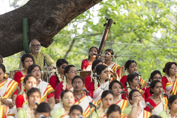 সূর্যোদয়ের সঙ্গে সঙ্গে নানান আয়োজনে নতুন বছরকে বরণ করে নিতে আগে থেকেই প্রস্তুতি ছিলো ছায়ানটের।