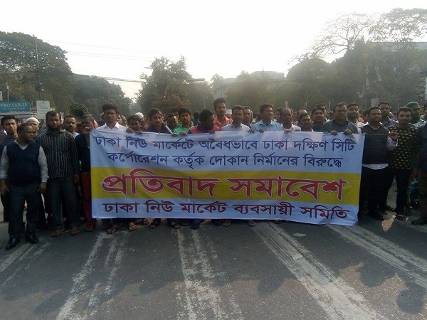 রাস্তা অবরোধ করে নিউমার্কেটের ব্যবসায়ীদের বিক্ষোভ