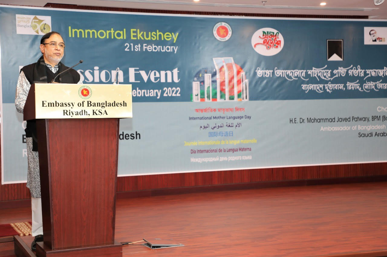 আন্তর্জাতিক মাতৃভাষা দিবস উপলক্ষে ২১ ফেব্রুয়ারি বিকালে দূতাবাসের অডিটোরিয়ামে সৌদিস্থ বিভিন্ন দেশের কূটনীতিকদের নিয়ে এক আলোচনা সভা ও সাংস্কৃতিক অনুষ্ঠানের আয়োজন করা হয়। এতে প্রধান অতিথি হিসেবে সৌদি আরবের শিক্ষা, সংস্কৃতি ও বিজ্ঞান বিষয়ক জাতীয় কমিশনের মহাসচিব হাত্তান বিন সাম্মান, বিশেষ অতিথি হিসেবে জাতিসংঘের আবাসিক প্রতিনিধির পক্ষে বিশ্ব স্বাস্থ্য সংস্থার সৌদি আরব প্রতিনিধি ড. ইব্রাহিম আল যিক, ওআইসির সাংস্কৃতিক, সামাজিক ও পারিবারিক বিষয়ক মহাপরিচালক মিজ আমিনা আল হাজরি বক্তব্য প্রদান করেন।